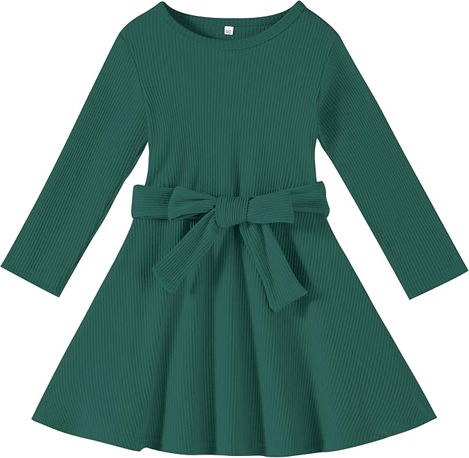 Toddler Dress Long Sleeve Baby Girl Knitted Sweater Dress Tie Waist Kids Fall Winter Swing Dresses Casual Holiday
