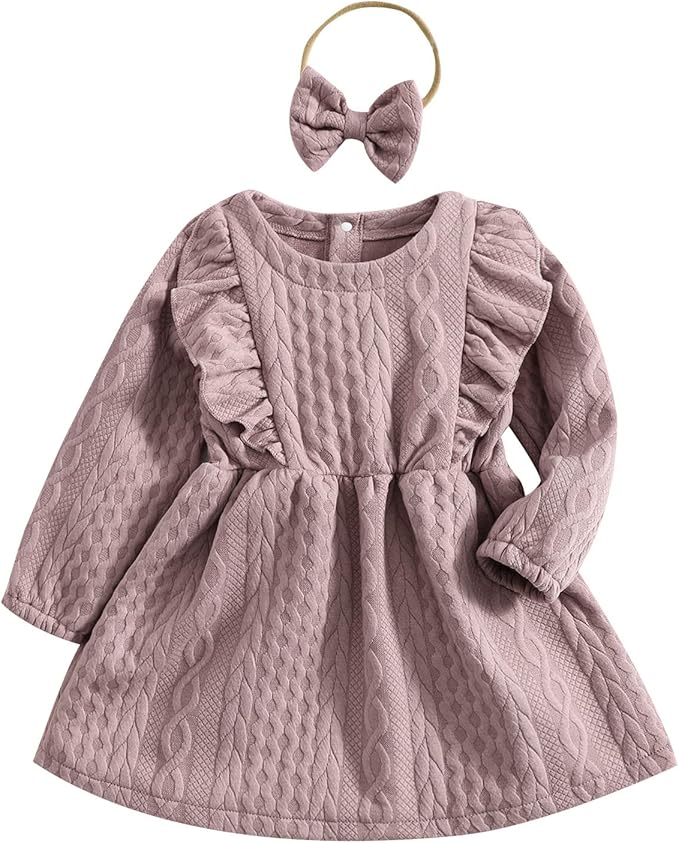 Baby Girl Knit Dress Long Sleeves Sweater Dress Toddler Fall Winter Outfits with Bowtie