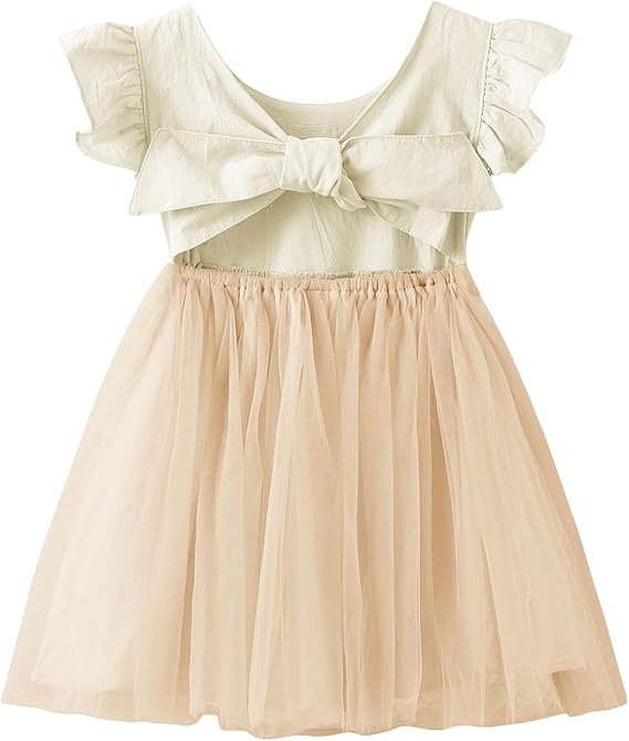 Toddler Girls Tulle Tutu Dress Linen Ruffle Tie Back Sleeveless Kids Princess Party Dresses