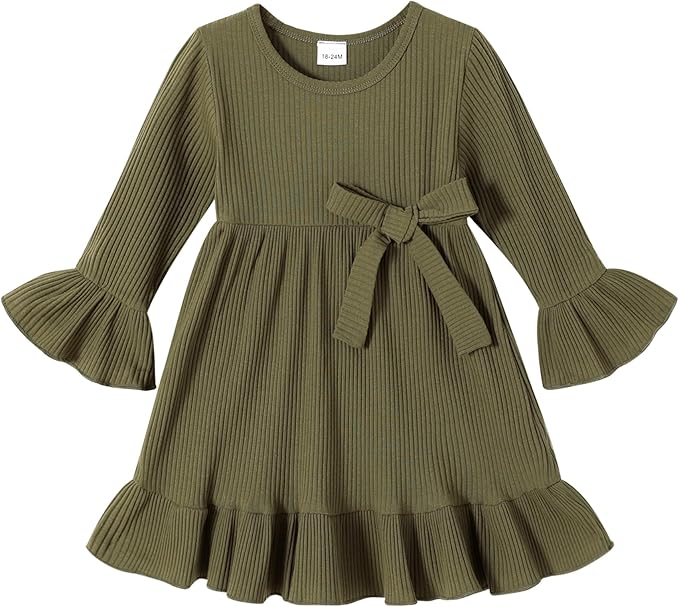 Kids Toddler Dress Baby Girls Fall Dresses Ruffle Long Sleeve Bowknot Casual Winter Dress for Girl