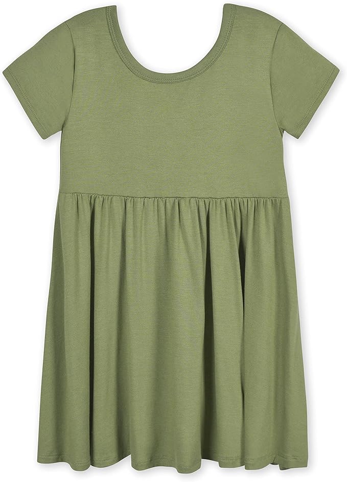 Baby Girls' Toddler Buttery-Soft Short Sleeve Twirl Dress with Viscose Made with Eucalyptus