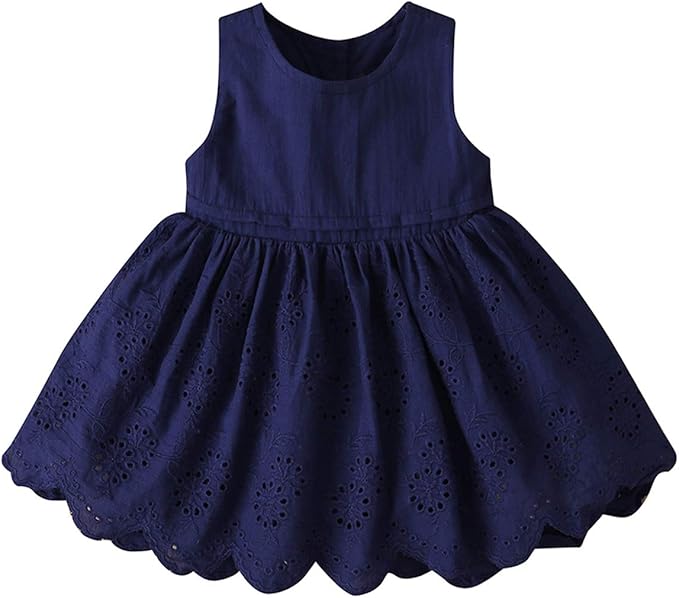 Baby Girls Cotton Dress Sleeveless Swiss Dot Dress Ruffle Sleeve Toddler Tie Back Dress Kids Party Dresses