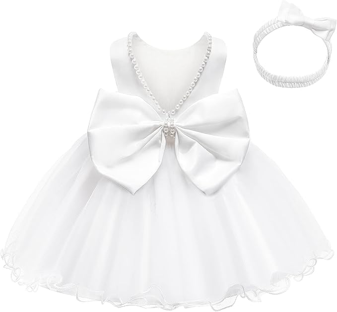 Baby Girls Dress Ruffle Lace Backless Bowknot with Headwear Pageant Party Flower Wedding Dresses