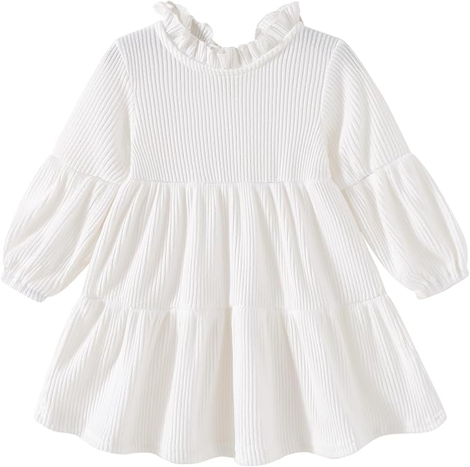 Toddler Kids Baby Girl Dress Lantern Long Sleeve Solid Color Casual Dresses Girls Fall Winter Outfit Clothes