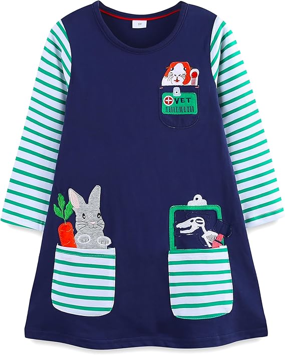 Girl's Long Sleeve Dresses Cotton Christmas Cute Embroidery Applique Swing A-Line Casual Tunic Playwear 2-13 Years