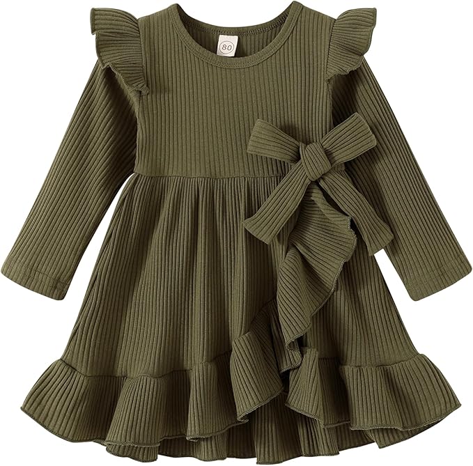 Toddler Baby Girls Fall Clothing Solid Cotton Pit Irregular Skirt Winter Dress Long Sleeve Skirt Outfits
