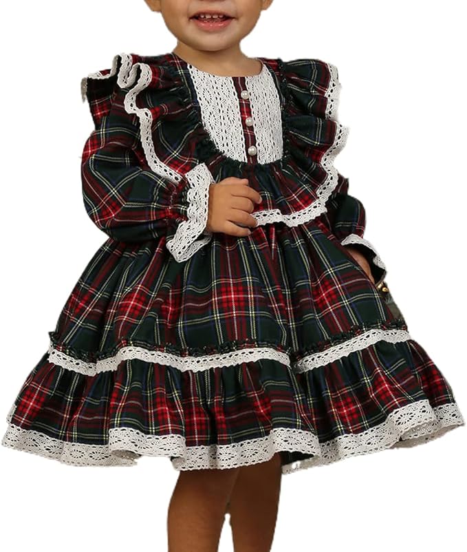 Toddler Baby Girl Christmas Dress Buffalo Plaid Tulle Tutu Skrit Princess Dress Xmas Clothes Outfit for Kids 3M-7T