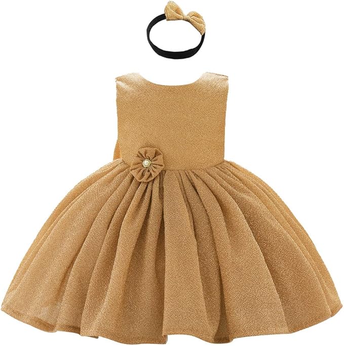0-6T Baby Girls Dress Princess Dress Special Occasion Formal Gowns Backless Pageant Wedding Party Dresses with Headwear