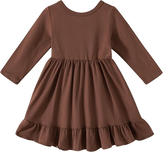 Toddler Girl Casual Solid A-line Twirly Dress Long Sleeve Skater Ruffle Hem Dresses Fall Outfit